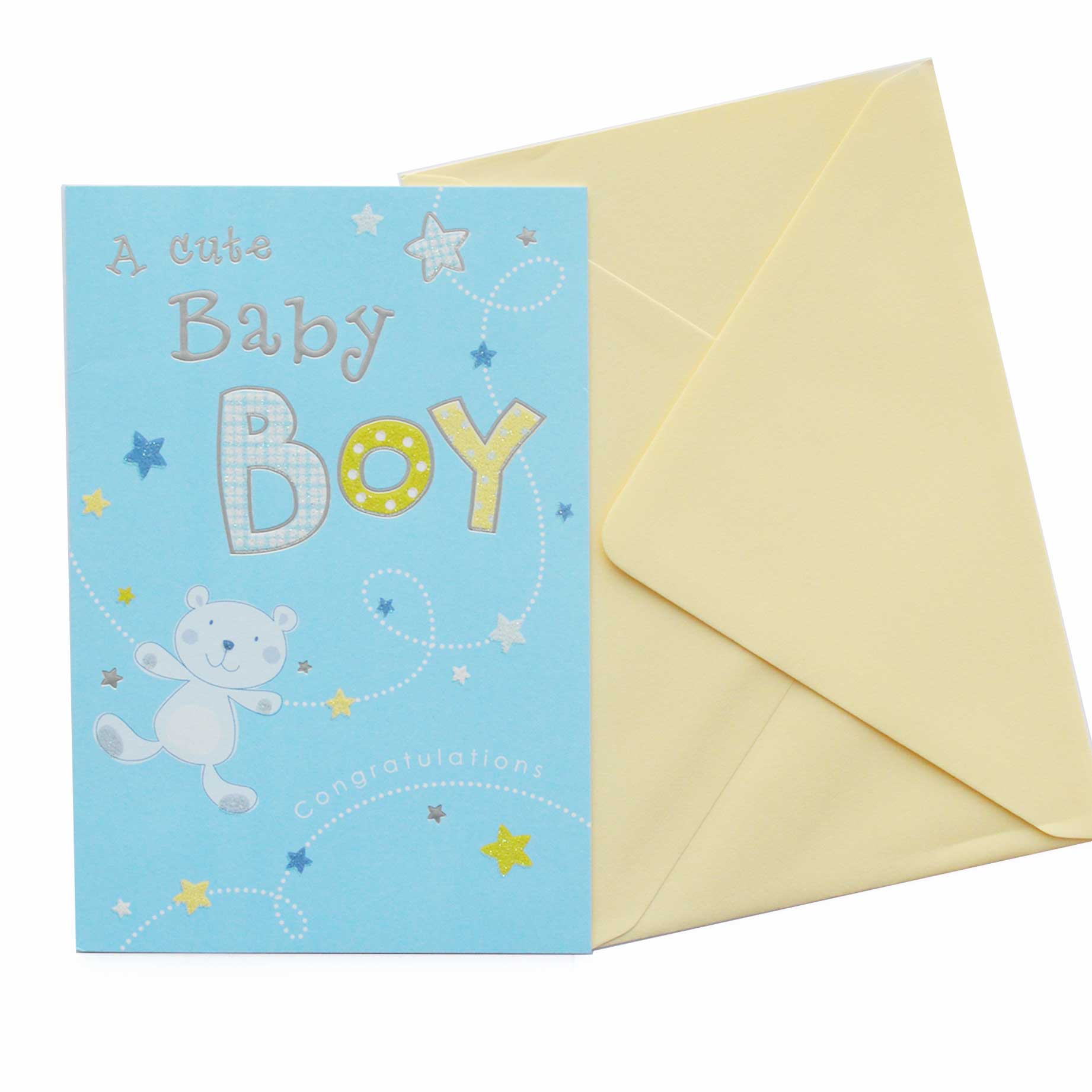 The message on the front reads: “A cute Baby Boy congratulations”