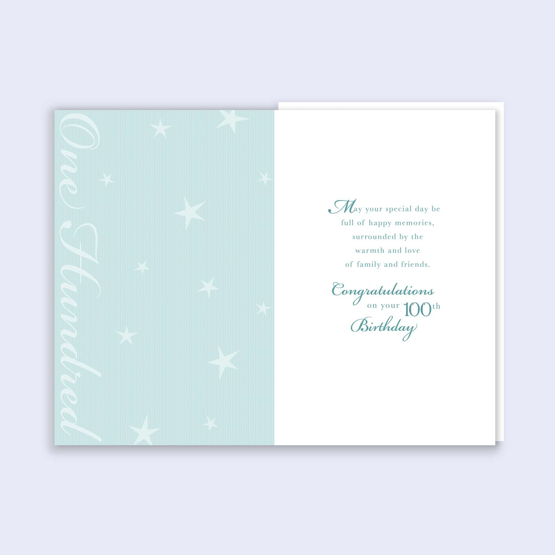The message on the front reads: “A Special 100th Birthday Wish”