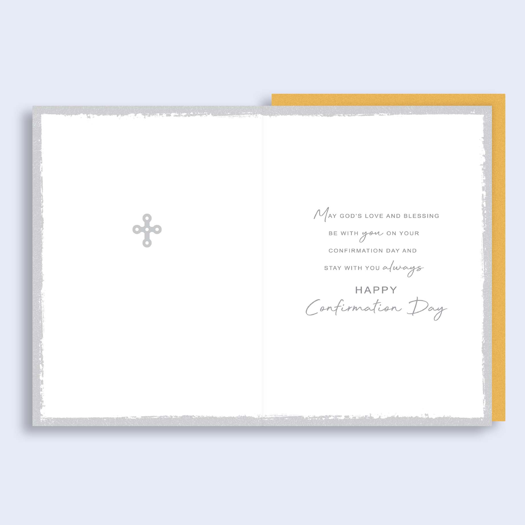 The message on the inside of the card reads: “May gods love and blessing be with you on your confirmation day and stay with you always