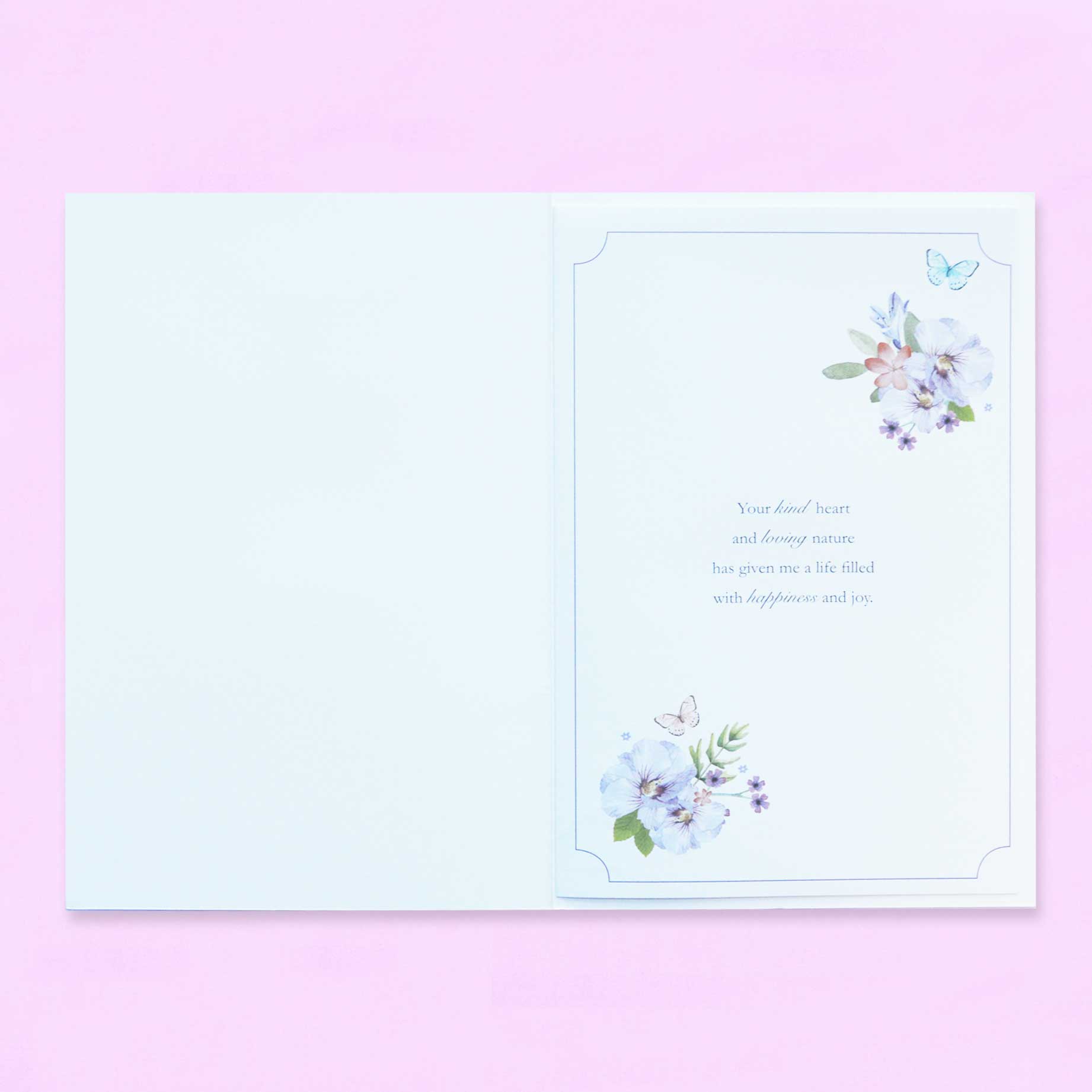 The message on the front reads: ‘Mum words can’t begin to explain just how much your love means to me. Thanks for being so wonderful. Your kind heart and loving nature has given me a life filled with happiness and joy.’