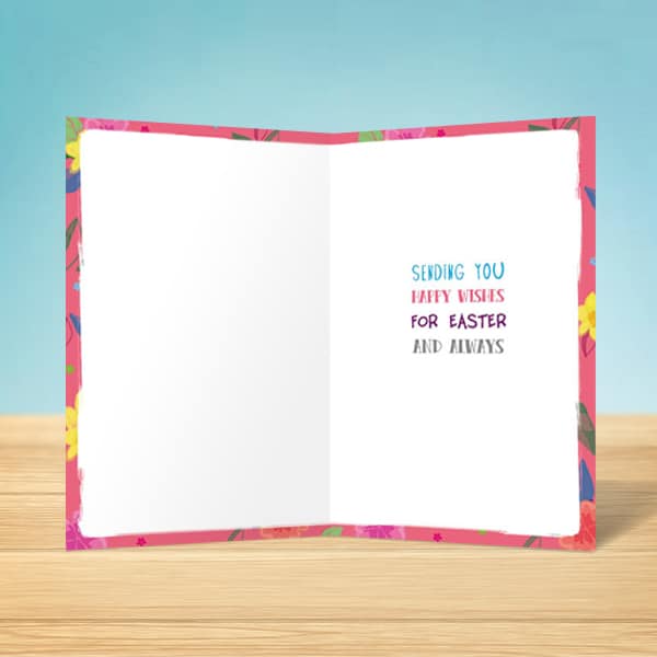 This floral card is full of fun, perfect for sending big bright wishes for happiness this Easter!